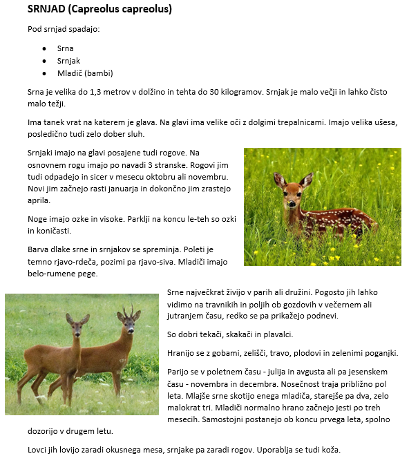 Obvezna - Napiši najbolj zanimivo stvar o srnjadi, ki si jo izvedel v tej uri.